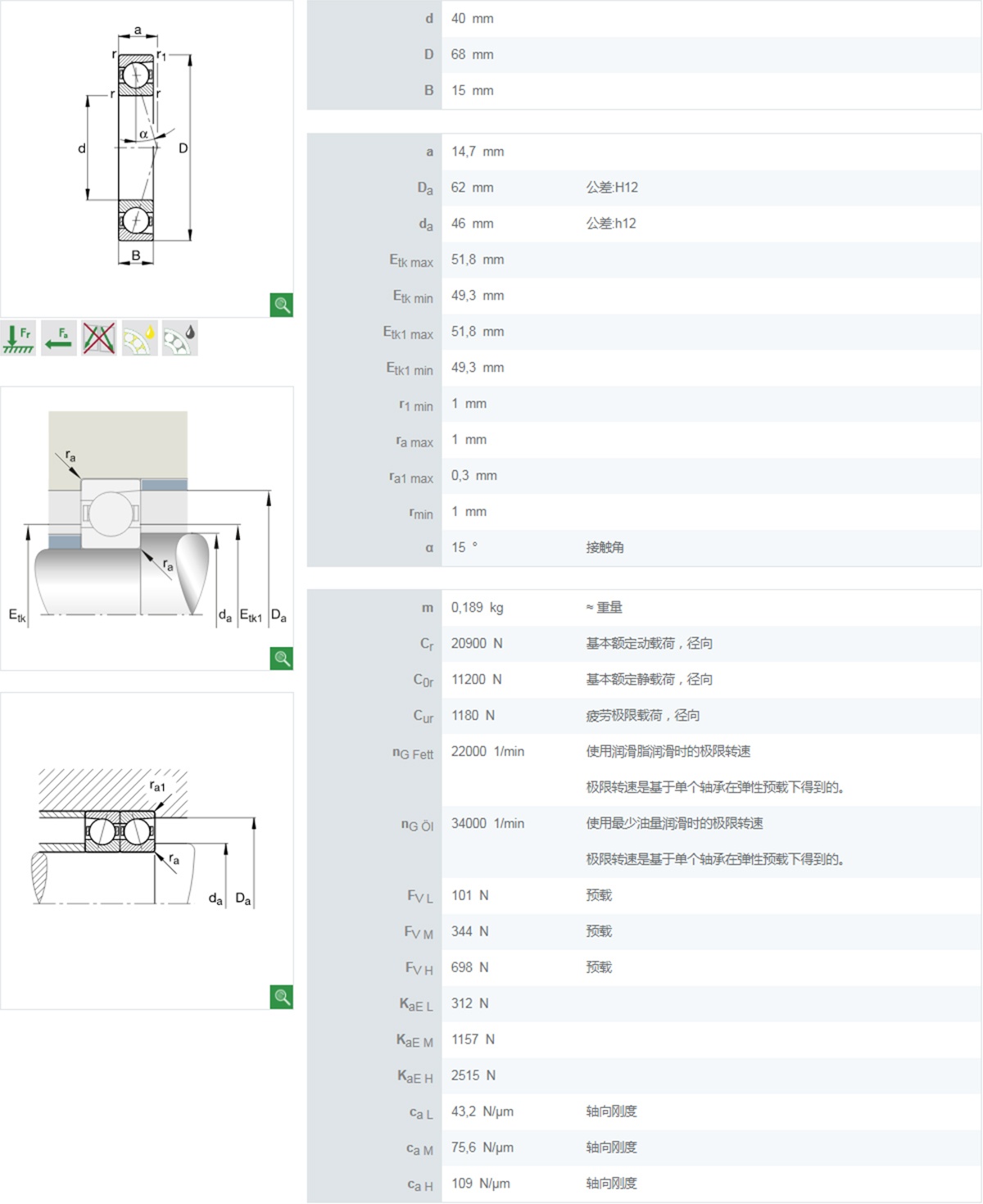 | 7008 | 40 | 68 | 15 | 20.5 | 15.9 | 15000 | 20000 | 18.7 | 14.6 | 11000 | 14000 | 0.21 |