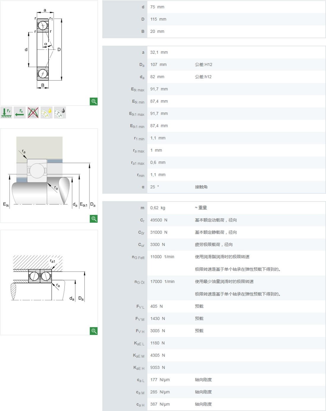 | 7009 | 45 | 75 | 16 | 24.4 | 19.3 | 14000 | 18000 | 22.2 | 17.7 | 100000 | 12000 | 0.26 |