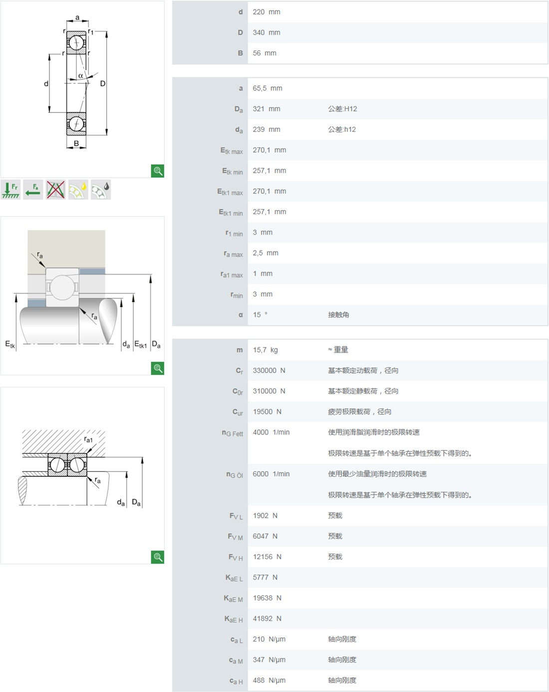 | d | D | B | 額定載荷(KN) Cr | 額定載荷(KN) Cor | 極限轉(zhuǎn)速(rpm) 脂潤(rùn)滑 | 極限轉(zhuǎn)速(rpm) 油潤(rùn)滑 | 額定載荷(KN) Cr | 額定載荷(KN) Cor | 極限轉(zhuǎn)速(rpm) 脂潤(rùn)滑 | 極限轉(zhuǎn)速(rpm) 油潤(rùn)滑 | ||