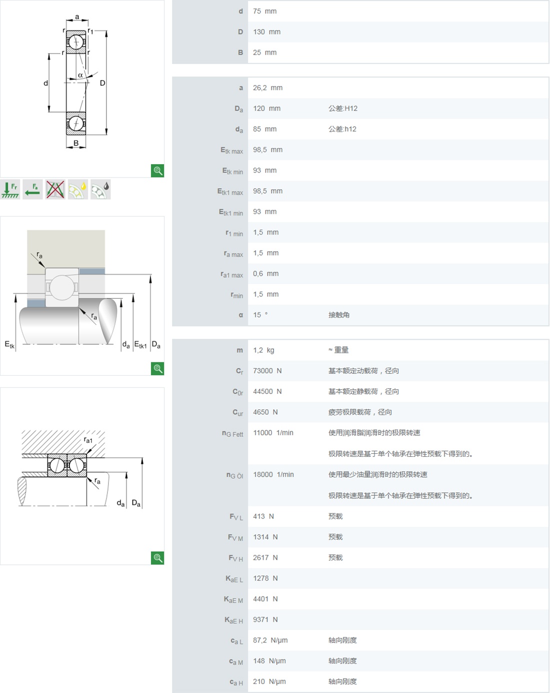 | 7215B | 75 | 130 | 25 | 71.7 | 59.3 | 4300 | 5800 | - | - | - | - | 1.23 |
