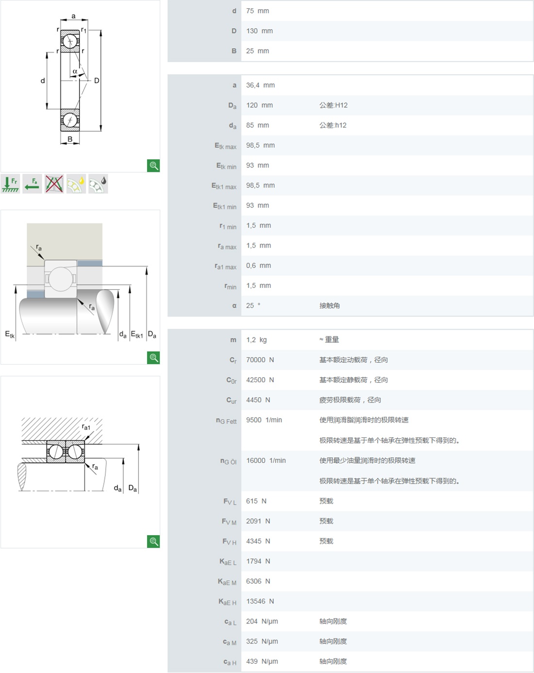 | 7214B | 70 | 125 | 24 | 63.2 | 50.6 | 4600 | 6100 | - | - | - | - | 1.12 |