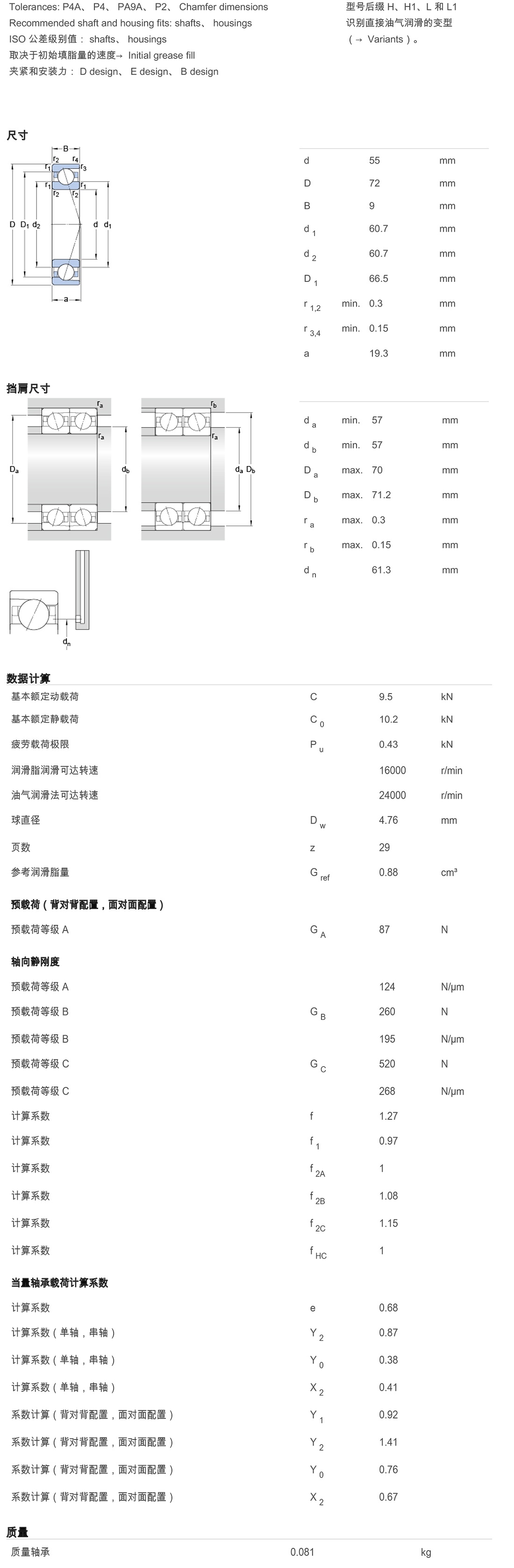 | 71811AC | 55 | 72 | 9 | 9.5 | 10.2 | 16000 | 24000 | 0.081 |