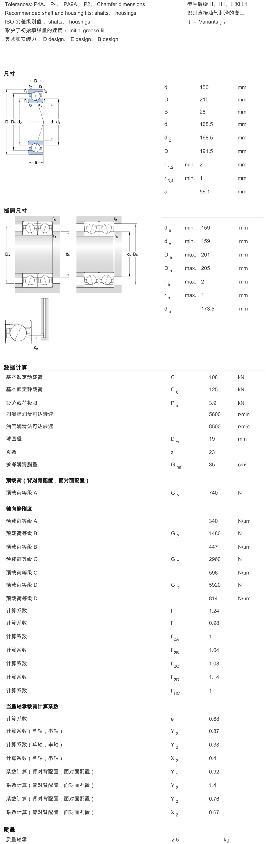 | 71930AC | 150 | 210 | 28 | 108 | 125.0 | 5600 | 8500 | 2.47 |